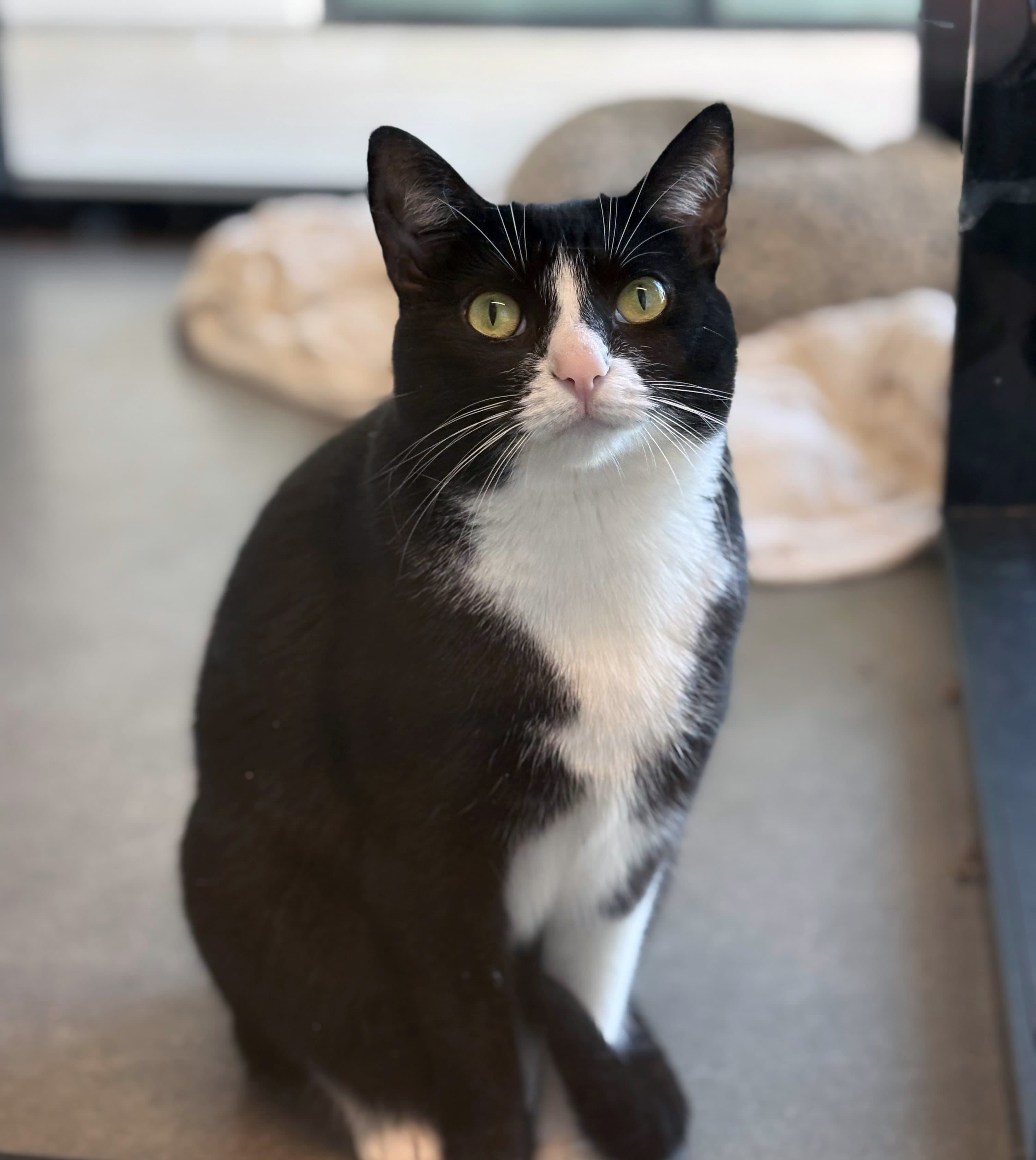 Gumdrop returned from foster care almost a new kitty. He’s still cautious with new people, but he’s much friendlier and more trusting than he was a year and a half ago when we first met him. The now 4-and-a-half-year-old Tuxedo kitty is looking for his forever family. Your gift will help support the care of Gumdrop and pets like him until they find their happily forever after.