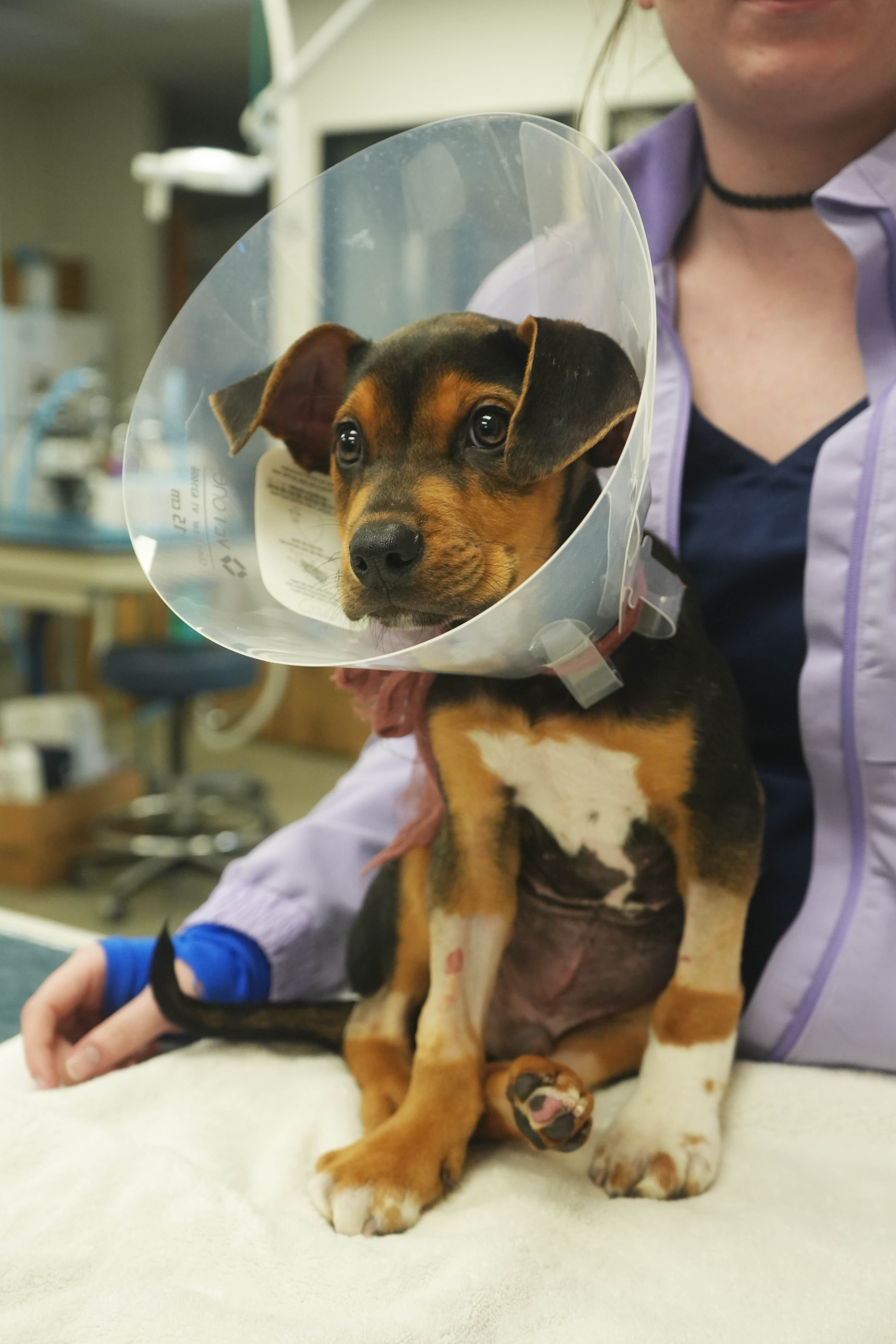 The Center ran dozens of treatments and tests to determine the cause, resulting in thousands of dollars in medical bills. The medical team determined Spencer was suffering a rare, internal malformation known as intestinal intussusception- which causes a telescoping effect of his intestines, leading to death if not treated immediately. The small pup was rushed into surgery where doctors worked for more than 5 hours to save his young life.